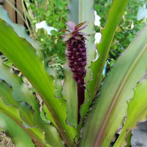 ■Eucomis comosa 'Sparkling Burgundy' ・ ユーコミス コモサ スパークリング バーガンディ 今日も暑い🌞 最高気温35℃、最低温度28℃ (以下、乙庭HPより) ・Eucomis comosa 'Sparkling Burgundy' 科名等:ユリ科 耐寒性球根 冬季落葉 花 期:夏 樹 高:40〜60cm程度 春〜夏にかけて暗黒紫色の剣状葉を茂らせ、夏には紫色の花茎を伸ばし、パイナップルを縦長にしたような形状の妖艶なピンク色の穂花を咲かせる、たいへん魅惑的なユーコミスの銅葉品種です。 ユーコミス属自体は夏咲きの球根植物として比較的なじみ深いものですが、本種スパークリングバーガンディはその美しい葉色から、リーフプランツとしても春〜秋まで長い期間楽しめる素晴らしい品種です。 春の芽吹きは特に葉の紫が色濃く、ショッキングなまでに存在感を発揮してくれます。 セリンセ マヨール プルプレスケンスや大型セダムの水色緑葉、セントーレア マジックシルバーの銀葉などと合わせるとたいへん美しいです。 夏場のパイナップル花も存在感満点!ガイラルディアやエキナセアの花、コロカシアやカンナ、各種グラス類と合わせてもとてもカッコいいですね。 耐寒性がありますが、凍結するような寒さが長く続くと枯れることがあります。鉢植えで霜除けできる場所で管理するか、庭植えの場合は冬期厚くマルチングして保護してあげるとよいでしょう。 花・葉ともに楽しめ、非常に利用範囲が広い、素晴らしいガーデン素材だと思います。
