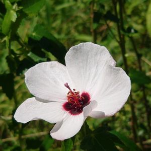 高砂芙蓉 和名 矢の根梵天花 正面から見ると 芙蓉や木槿にそっくりで 迷ってしまいますが 大きさは小さくて控えめに咲いている 一番のお気に入りは 巾着の様になった開き始め 絞り染めの様な紅褐色の筋が魅力的 小さいながらも独自のスタイルで 草むらの中でも可憐に咲いている 暑さを忘れてしまいそうな 清楚で涼し気な花…💮