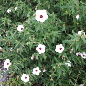 ヤノネボンテンカ 矢の根梵天花💠 Pavonia hastata Cav. アオイ科 ( Malvaceae ) ヤノネボンテンカ属 別 名 = タカサゴフヨウ ( 高砂芙蓉 ) 9月20日 10時11分 撮 影 💠 花 期 = 7~11月 常緑低木 樹 高 = 50~200 cm 原産地=南アメリカ ( 🇧🇷ブラジル・🇧🇴ボリビア・🇦🇷アルゼンチン )