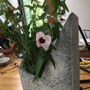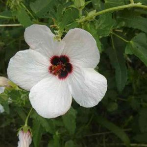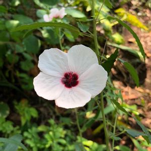 下宿の近所で見かけたお花です🏵️ 芙蓉に似てますが、茎が細く、草丈も私の膝くらいまでです。 これは何ていう植物でしょうか?