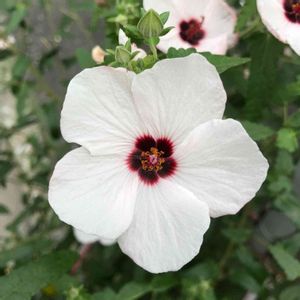 白い花びらに赤紫色、蕊も美しい。 この花の名前ご存知の方よろしくお願い致します🤲