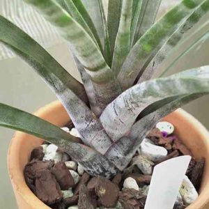 我が家のベランダの女王様、 チランジア・ヒルダエ 葉のシマシマ、太陽☀️を浴びてはっきり、キレイに見えます😆。 一番気を使って育てています😃。 開花時には花茎を含めると2㍍になるらしいです😲。見てみたいのでじっくり育てます😄。