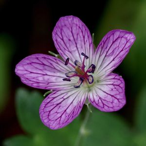イヨフウロ フウロソウ科フウロソウ属 多年草 別名はシコクフウロ 本州東海地方以西 四国、九州に分布 山地の草地に生育する。 イヨフウロは「伊予風露」の意で、別名のシコクフウロは「四国風露」の意である。 花期7〜9月 紅紫色で径2.5〜3cm 枝先に2個ずつ付く。 花弁は5個あり、萼片より長く、倒卵形で、花弁基部の縁に白色の軟毛が生える。 雄しべは10個あり、葯は青紫色から淡紅紫色になる。