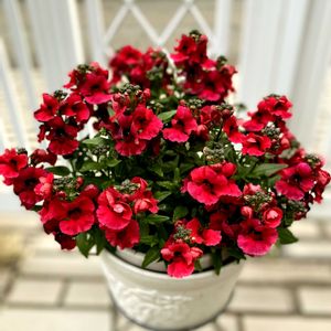 ハルディンの宿根ネメシア[ モフモフ レッド ] 一応霜が当たらないように軒下に置いてあるけど、寒さに負けず大輪の花をずっと咲かせ続けてくれています。