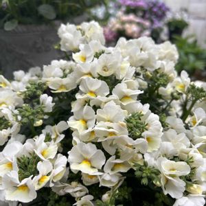 ネメシア モフモフ ホワイトパープルアイ ハルディンさんの大輪のネメシアです✨ わが家の花壇の花達は葉が茂ってきて春めいて来ました🌼