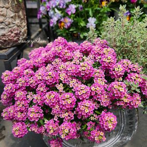 真夏日.⋆*🔆暑かった(>ㅿ<;;)💦 我が家のƱ*ƕくㄘゃƕ🩷 ①2年生 アリッサムスイートアリスʾ満開です💠 ②良く咲いてくれましたガーデンシクラメン💠 ③先日お迎えのカリブラコア💠🌼