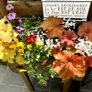 春の寄せ植え🌸 去年秋に植えたヒューケラが鮮やかな色になりました☺︎