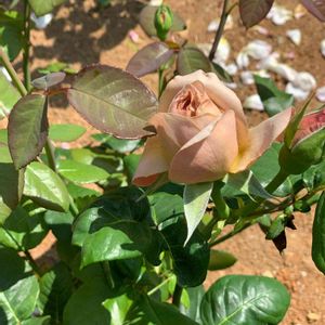 カフェラテ シックな色だけど存在感たっぷりの大輪でとても素敵な花色✨ 二番花も結構大きいです🌹 春に花付きの大きな苗でお得に売られていたので衝動買いでお迎えしました♪ 後で調べたらウドンコ、黒星なりやすいらしく少し心配です🤗