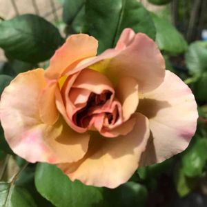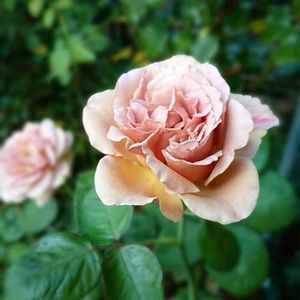 おはようございます😊 四季咲きバラ カフェ・ラテ😊 このニュアンスカラーがとても素敵なバラです😊 なんとも言えない、きれいな色で、咲く子によっては、もっとコーヒー色っぽかったり、ミルク色だったり😊 春は苗が小さく、あまり咲いてくれなかったんですが、綺麗なカフェラテ色のお花が見れて、嬉しいです😆🌸 昨日はあまりにも暑かったので、鉢を玄関まで入れて、パシャリ📷😊 今日は金曜日ですね〜😍 今日も穏やかな良い一日をお過ごしくださいね〜😍🌸