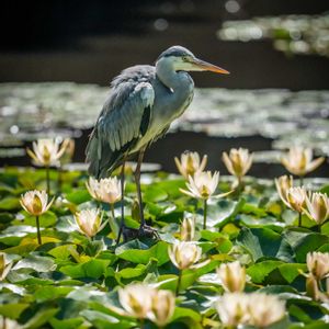 トリの金曜日。そろそろスイレンが閉じかかり始めるころ、アオサギさんが暑い陽ざしも苦にせずに翅を休めに来ていました。2025.07.21.