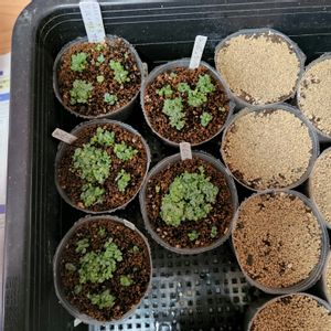 2023年交配実生 クスピダータ パラス幅広×普通パラス4cmポット 徒長せんけん嬉しい♥️ クスピダータ サラゴサエ×クスピダータ サンロベルト クスピダータ同士 サラゴサエ交配のくせに成長早くて嬉しい❤ 黒爪ザラゴーサ×クスピダータ サラゴサエ たぶん黒爪はサラゴサエっちゃろう 成長遅っ! 4枚目悪い土同じ種はもっと遅い って思ったけど写真広げて見たら本葉出とる けどバリバリちっちゃい🌱⋆。 5枚目、土が悪かったりひとつ2つだけ発芽のまとめるため 1週間前くらいに植え替えた 昨日ほとんど溶けだした 発芽せんかった種のうえに植え替えたし 相変わらず下手くそやけん溶けるくさ