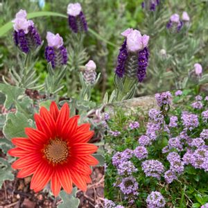 外は雨☔️☔️☔️ 雨降る前に ♡小さなラベンダー ♡オレンジのアークトチス ♡クリーピングタイム そろそろ止んで欲しいけど また降り出した😩 🏷マムダチ♡