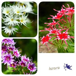 おはようございます🙋 ひと月程前にupした赤いスターフロックスちゃん🌼 色違いを見つけたので3姉妹で📷 和名:ホシザキキキョウナデシコ(星咲桔梗撫子) 2018.5.26 2018.6.24撮影📷