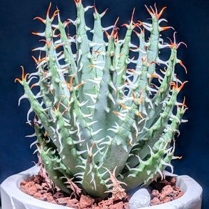 アロエ属 エリナケア✨️✨️ Aloe melanacantha ssp./var. erinacea (アロエ・メラナカンサエ リナケア) 大雨の後 一気に下葉が蒸れましたよ~4枚💦 その後倒して、植え替えてすっきり🤣👍👍 涼しく過ごして頂きます😆
