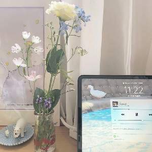 買い物ついでに花も買った💐 この白いオオニソガラムっていう花に一目惚れ✨スターチスは「ブルーファンタジー」という品種名だそう💙
