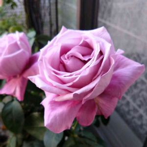シャルル・ド・ゴール .。゚:*:✼.。 シャルルさん 今、大きな花を付けてます 直径13cm強です この前まではそんなでもなかったのに、今咲いてる3つ、全部このくらいの大きさです 寒くなってきたのにどうしてだろう? ピンク色で咲き初めて最終的には藤色に近くなります 香りも香水のような芳香です✨
