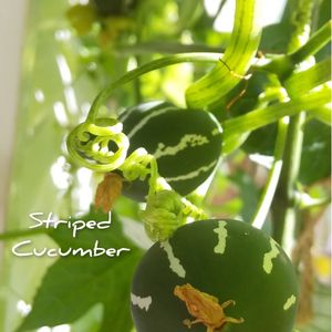 こぼれ種からの一本のオキナワスズメウリ🌱 夏の終わりからグングンと蔓を伸ばし… え~!今??😳…と思ったけれど、一応誘引してみましたら… 青々としたグリーンカーテンになり、いくつも実を付けています!✨💚 嬉しいけど、ちょっと複雑… だって去年は、花は咲くけど結実しなくて、GSでアドバイスをいただき、筆で人工受粉させて実を成らせたのに~💓