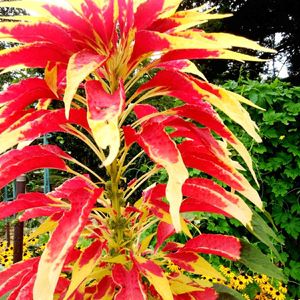 *ハゲイトウ(葉鶏頭) 燃え立つ夏 あの夏あの日…この夏この日… (鮮やかな葉のつけ根に付いてるものが、花だそうです🌱) 花言葉…不老不死