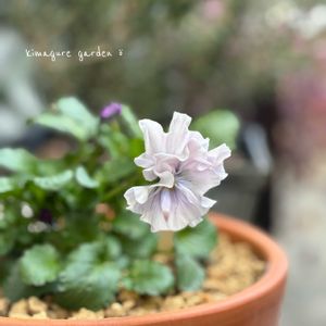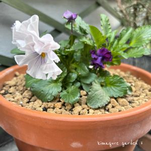 こんにちは😊 パンジーきもの お迎えした時は薄いピンクのような気がしたけれど 今は薄い水色 そして新たな蕾と開いたお花が 紫🟣!? 同じ株から別色咲くんや〜😳