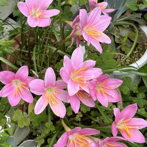 ゼフィランサスのツボミが急に見え出したと思ったらあっという間に一斉に咲き出しました🌿💕🌿 2枚目はつぼみを見つけた時です🤗