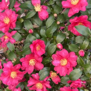 いつもの散歩公園でシシガシラ(カンツバキ)が咲き始めました🤗 地面近くに咲いていてサザンカが賑わう前に初冬の公園に彩りを🌿💕🌿