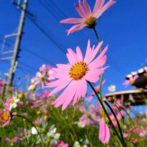 今朝のコスモス🩷🤍💜 毎年この場所に咲く大好きなコスモス❣️ ②ほんのりピンクなので勝手に桜色のコスモスと呼んでます🌸