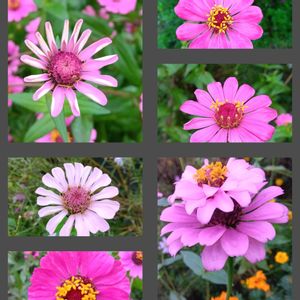 雨上がりの朝のジニアたち🩷🩷🩷 同じピンクでも色んなお花💮 2段咲きもいます