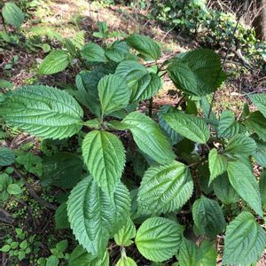ヤブマオ…かしら さっきの切れ込みの多い葉っぱと同じような場所で見つけました👀 平べったい葉っぱ🌱に荒いノコギリ葉🪚 まだ小さな子ですね😐