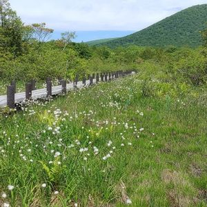 これです、ワタスゲ。 初めて見ました💕🎶 一面ワタスゲでしたが、今年は少ない? 人の通った足跡があったので、何人がいると思ったら、私たちだけ‼️ 途中動物の💩もあり、🐻? 早めに切り上げて戻りました😆💦 スリル満点のトレッキング😮💨 見て頂きありがとうございました❤️