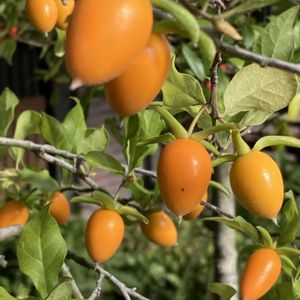 《ロウヤガキ》柿には見えない🤭 小さく尖った橙色の実が特徴の柿で、盆栽や庭木として広く利用されています🤭 食用には向かず渋柿ですが、秋に赤く色づく果実が冬まで残り、冬の庭を彩ります🌸🌼🤭