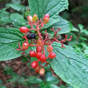 ①ガマズミ ②ツクシコウモリソウ ③ヤマグルマ ④シラヤマギク ⑤マツカゼソウ 多良山系で見られた花や実です。