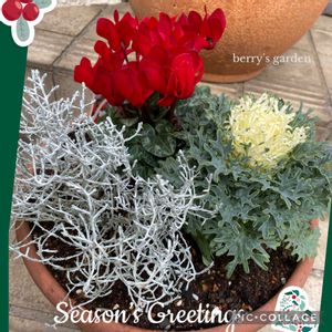 昨日の続きのもう1つの寄せ植え 真っ赤なシクラメンとプラチーナと もう1つの葉牡丹 ② 葉牡丹の名前 フェザーピュアホワイト 大きくなっていく予感 昨日の寄せ植えのピンクの葉牡丹 の名前は、、 ヴィンテージベイン どんどんピンクに染まっていく そうです。楽しみ〜🎶💝 ③横長のプランターにちょっと おしゃれなビオラちゃんと シルバーレースと実家近くの 園芸店で見つけた可愛い小鳥の オブジェとワンコ付き オーナメント 両サイドのビオラはフリル咲き ティアード ラベルが可愛い👩の フリフリドレス👗 あと💜はミニフリフリ😆 シルバーレースも入れました🎶 ④いつものgardenサンタ🎅 ジョウロを持って毎年見ては 癒されてるのです〜🎶😉💖 ③の小鳥のオーナメントを ズームイン 最後はお花のチョコレート💝 お皿の絵柄はお友達が彫った 花柄です✨グラスリッツェンと 言うそうです。 こちらもうすぐ☂️、、 明日午前中は☂️の日曜日 皆様も暖かくして素敵な日曜日を お過ごしくださいね✨ 🏷️いつまでも友達でいよう♡ 他