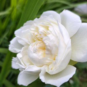 真綿のようにふんわり柔らかで、クラシカルな佇まいの白薔薇・「ボレロ」が、うっとりする香りと共に咲いてくれています🌹✨ 大好きなフランス・メイアン社製🇫🇷✨ 雷雨の際に、地に落ちた薔薇の花弁を数えてみたら…その数42枚もありました🥰🙏 病気等に割と強い品種で、実に豊かな花弁を持ちます💗✨