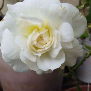 「薔薇 ボレロ」です🌹 白い薔薇で中心がほんのりピンク色、とても優しい雰囲気が大好きです💕 今日は朝から冷たい雨でした・・・☔ 帰宅するときには雨が上がり、バルコニーでは薔薇がお迎えしてくれました🥰 薔薇のお花に癒されて、午後はゆっくりしようと思います✨