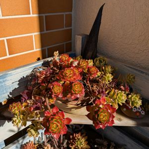 多肉棚の4段活用です。 一番上の棚の尖った物体は、去年豊洲の市場のマグロ解体で、あまりに熱心に見てたら、お兄さんが、くれました。 普通は子供に、あげるみたいでした。 私もマグロちゃん、頑張るわー。