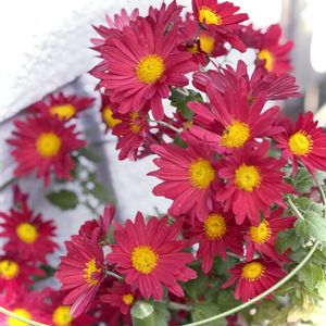 バラ🌹𖧷 ⁺. 菊🌼𖧷 ⁺. モミジ🍁 寒い朝。 凍えそうになりながらも、蕾を膨らませている薔薇🌹 健気です☺️ この菊も毎年実家の庭に咲いてくれる古株さん。 バックのモミジ🍁がハラハラと~。 🏷️つぼみに魅せられて 参加させていただきます(*^^*)