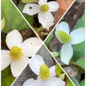 💐今日のお花 💐 🍀野の花・ドクダミ 1🍀 今日もいつもの散歩コースで見つけた野草、ドクダミです。 薄緑色の蕾が可愛い💕 雨上がりです🌂 雨粒が光り綺麗です✨✨ 【ドクダミ】 《花の特徴》 ❶白い花弁に見える部分は実は花ではなく、総苞片と呼ばれる葉に近いもの。 ❷花の真ん中に立つ、長さ1~3cmの黄色い部分が花の本体。 ❸花は両性で雄しべ3個、先が3裂した雌しべ1個。黄色く見えるのが雄しべ、白く見えるのが雌しべ。 《花期》5~7月