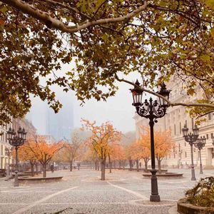 🍁フランクフルトの風景🍂 もう一枚、ビル🏙を背景に、綺麗な樹形と色❣️ なんていう種類かなぁ😊