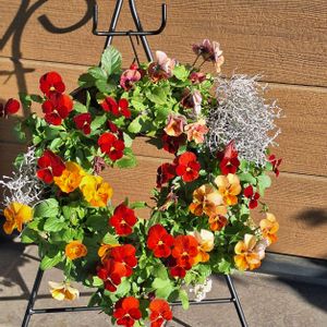 ビオラ3種類 上2個は最初のリースのです。 ブラックのビオラも たくさん咲いてきました。