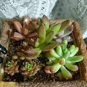 冬越し、省スペース化のための寄せ植え。 100均の木箱に植えました。