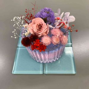 ボタニカルキャンドル 55作品目💖 久々に 今朝作ったー❤️✨ 今回はジェルをピンク色とブルーの2層に してみた🌸