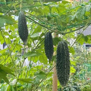ゴーヤがどんどん成ってきました🎶 中型と書いてあったけど どれ位で収穫なのか調べたけど🤔? 夕方1番目2番目に成ったのを触ってみたらブヨブヨしてる😲 こちらの地域全然雨☔降らず 節水を呼びかけられています💦 毎日の水やりも2日毎に変えました。 明日収穫して腐ってなければゴーヤチャンプルします! ② 夕方タニパトで最初見た時咲いてなかったのに 暫くして見たら👀咲いてたよ😊
