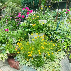 『矢車草』 あらあら 密になりすぎよ‼️ って植え替えてあげない私がいけないのね‼️ m(_ _;m)三(m;_ _)m 出来るだけ早く定植します‼️