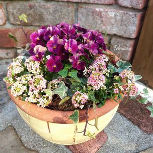 宮崎ビオラの『こももこべに』 可愛いアリッサムと寄せ植えにしてみました😊