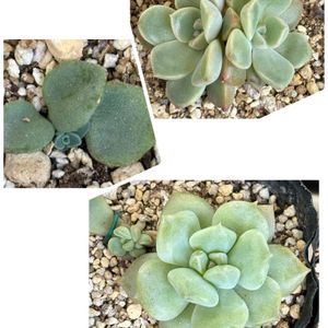 備忘録④❣️ 葉挿しから育った子や復活苗です🌱 備忘録はもう少し続きます😅 左 思い出露 右上 スノーチーズケーキ 右下 ピュアラブ