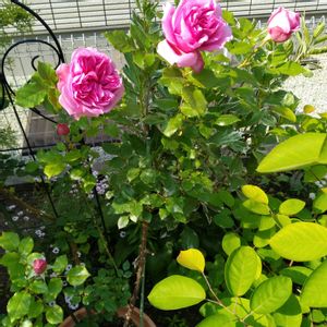 この時期の雨は本当に嫌だわ(/_;) 皆様のお庭はご無事でしょうか? ①ウイリアムシェイクスピア2000 今が満開なので、昨夜は軒下移動しました。 樹勢弱いし、気難しい子だけど好きよー♥️ ②父作成ガーデンシェルフ 大きく育つマダムピエールオジェを誘引してます。 ③ベルオブウォーキング この子は早咲きなので、薔薇とコラボし辛い💦いつも瀕死の状態でなんとか共演させている。 ④カラーオブジュピター 毎年沢山の蕾が黄変して落下。思ったより手強い薔薇。でも可愛い子だから、なんとか攻略法を編み出したい。 ⑤ローズポンパドール 挿し木からの復活✨大きなお顔で咲いてます。 この子をうまく誘引する方法を教えて欲しい。