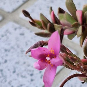 多肉植物 ①②③ 桜吹雪がやっと咲いてくれました パッと開いた所撮れません😅 ④ ピンキーも綺麗に咲いてくれました ⑤ポーチュラカも多肉植物だそうですね 綺麗に咲いています
