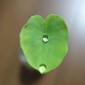 サトイモって、葉っぱの先から雫が出てくるんですね。 ころころと葉の上に乗っていて、とてもきれいです。