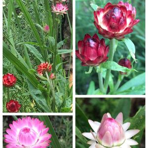 こんばんは😊 昨年秋に種まきしたムギワラギク が咲き始めています。1メートルくらいの草丈ですが支柱なしでシュッと立ってます。 ドライにするにはこれくらいの咲き具合で摘んで♬