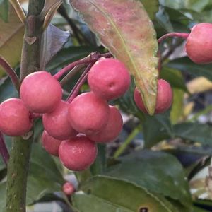 ピンク色の実のマンリョウ🩷 自生の赤と白の実のマンリョウは、ほっといても増えていますが、2年前に園芸センターでピンクの実を見つけて見過ごせず迎えました🥰 昨年は実数が少なくて心配しましたが、今年は復活です🎶